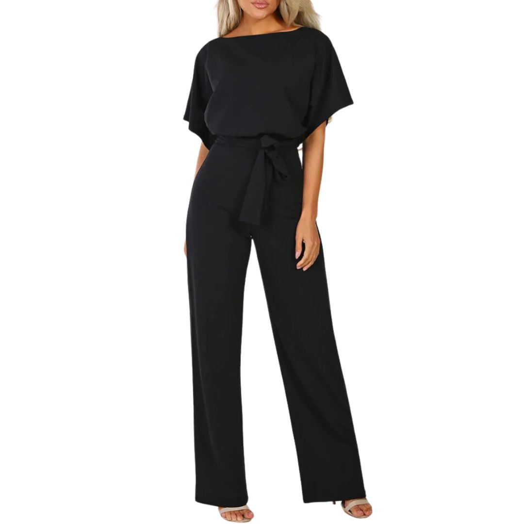 The Celeste jumpsuit features a casual chic design perfect for various occasions. With playful lacing details and short sleeves, it offers an airy and comfortable fit for warmer days. This versatile piece can be worn while shopping, enjoying an evening out, or simply relaxing in style.