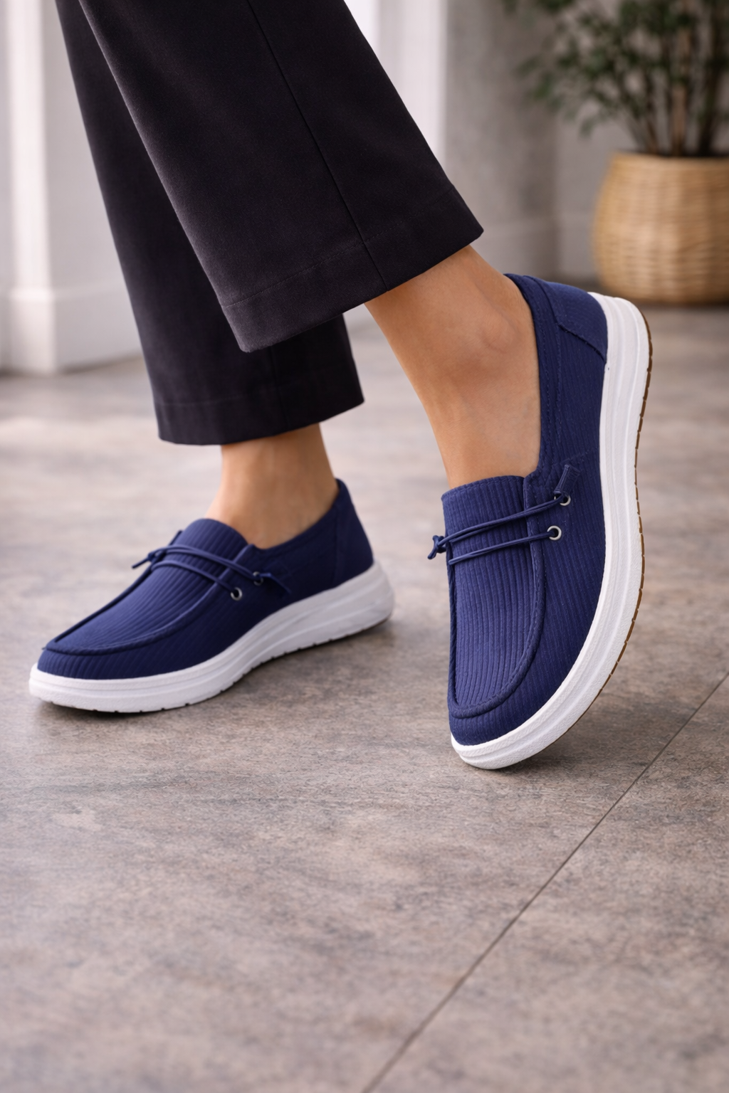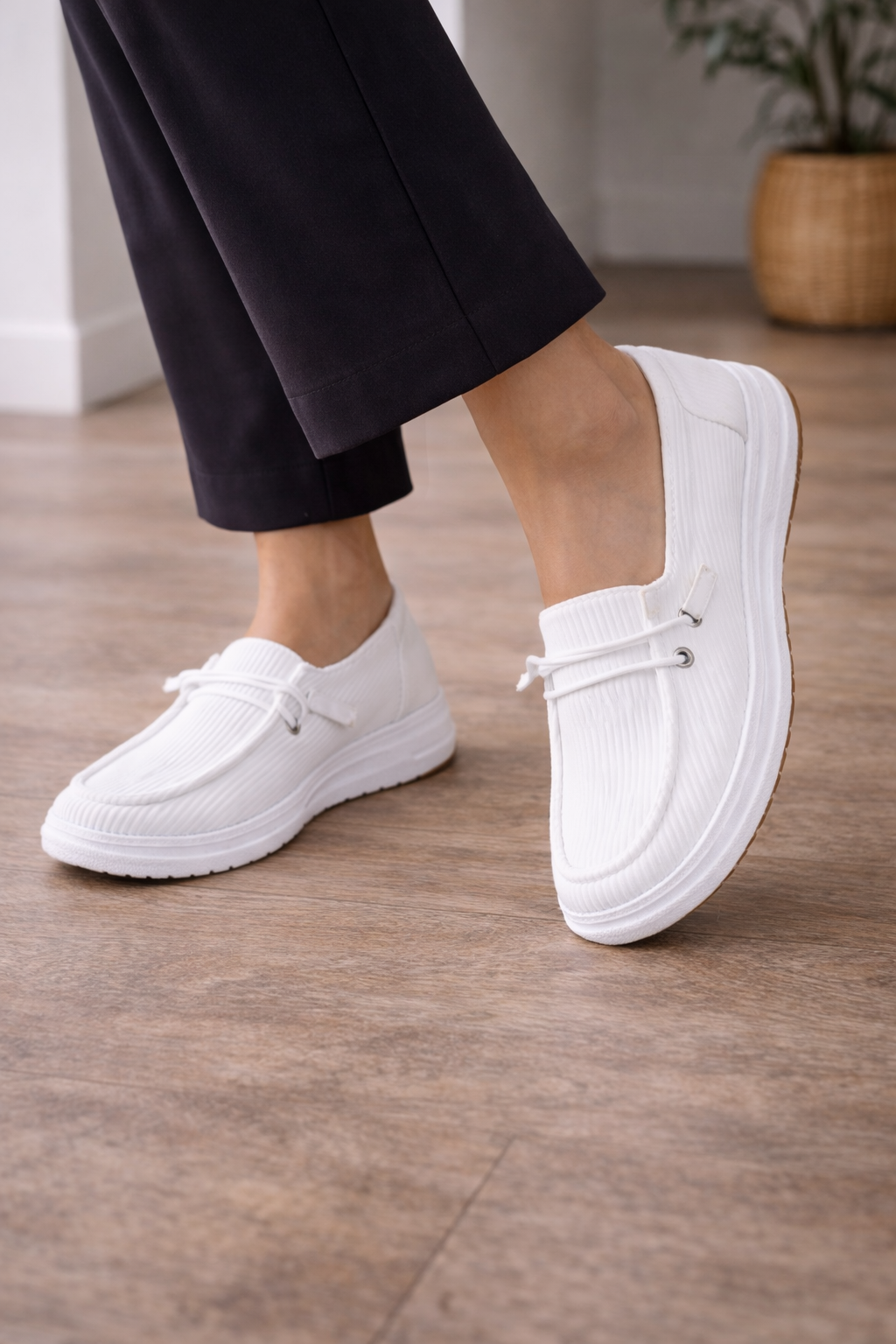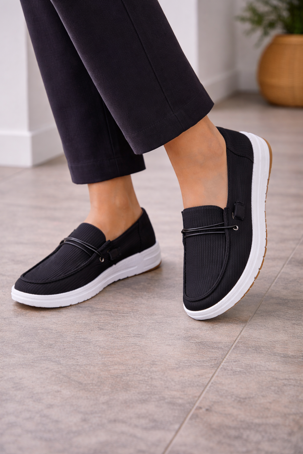Women's loafers with a ribbed surface and a slip-on fit. These shoes offer soft cushioning for all-day comfort. The unique texture provides an interesting detail, making them perfect for a casual style. These loafers are great for everyday wear and can be easily styled with different outfits.