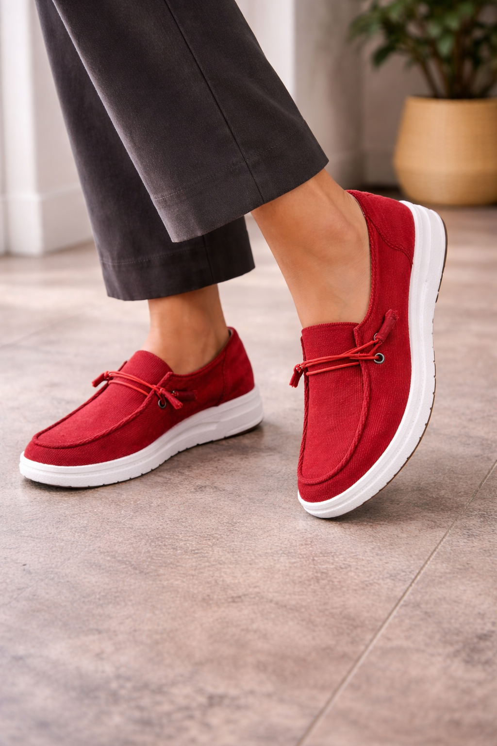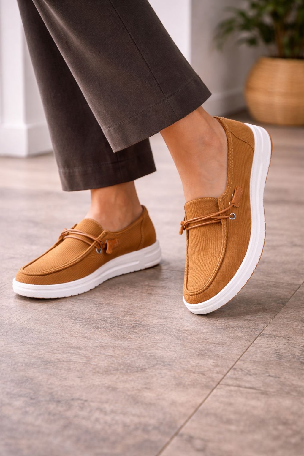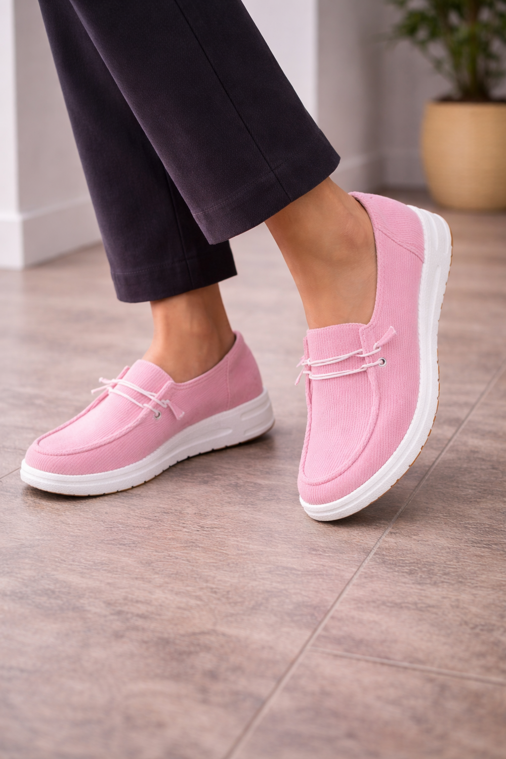 Women's loafers with a ribbed surface and a slip-on fit. These shoes offer soft cushioning for all-day comfort. The unique texture provides an interesting detail, making them perfect for a casual style. These loafers are great for everyday wear and can be easily styled with different outfits.